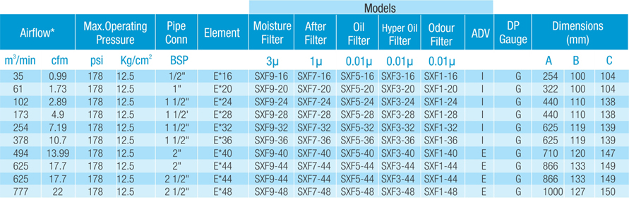 * The flow rating is based on 7 bar operating pressure. Lower the pressure the flow rating will be low as proportionate** ADV & DP gauge are additional accessories |